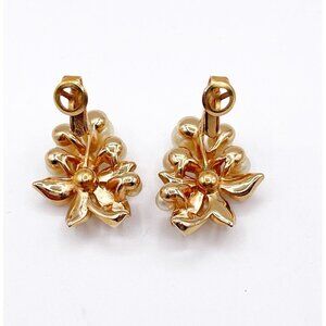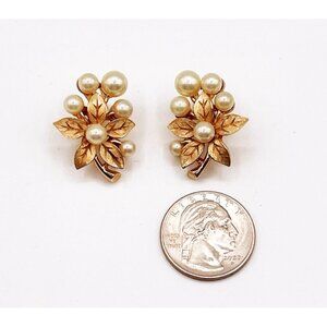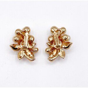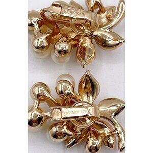 Vintage Majorica Spain Pearl Clip On Earrings Gold Tone Floral Cluster Romantic