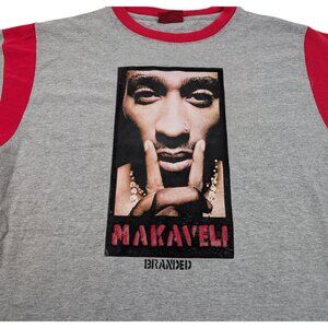 Vintage Makaveli Brand Tupac 2Pac Shirt 00s Y2K Gray Ringer Sz Tag XL (Fit L)