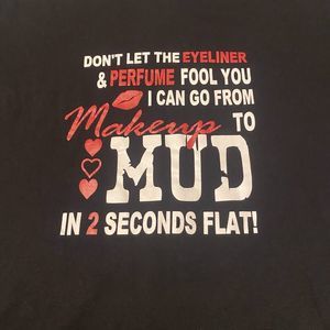 Vintage Makeup to Mud in 2 seconds flat! Shirt by Anvil Knitwear women’s Size XL