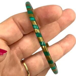 Vintage Malachite and Brass Thin Stacking Bangle Bracelet