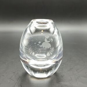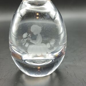 Vintage Maleras for M Sweden Etched Girl in Flower Garden Swedish Crystal Glass Bud Vase/ Paperweight. Signed. Gorgeous!