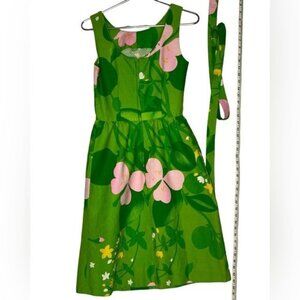 Ready to bloom into vintage fabulousness? Say aloha to this vintage Malia Honolulu floral dress that’s as vibrant as a summer luau! With a lively green and pink floral pattern, this dress will have you feeling like a tropical dream. And guess what? It has pockets! Yes, pockets! Perfect for stashing your phone, snacks, or maybe a tiny island souvenir. Get ready to turn heads and collect compliments in this retro stunner.