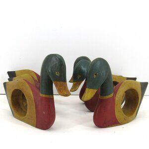 Vintage Mallard Duck Hand Painted Napkin Rings Set of 6 One Repaired Read