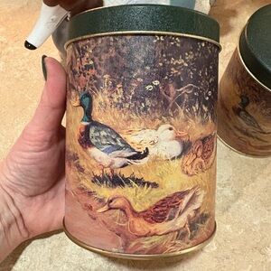 Vintage Mallard Duck Print Set of metal cylinder tins with lids
