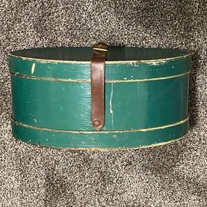 A beautiful vintage hat box with leather strap. Due to the age of this box, it is very worn but beautiful nonetheless. Definitely a conversation piece and a rare find! See photos/video for expected wear.