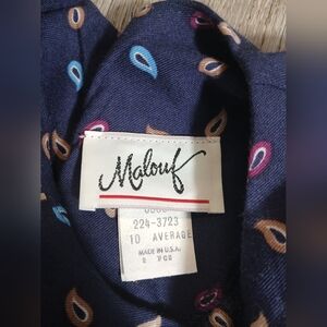 Vintage Malouf Elegant Navy Blue Printed Dress Belted Average Size 10