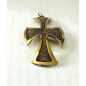 Vintage Maltese or Templar Cross Pendant Gold-tone Metal Textured. Approximately 3x1 3/4 inches.