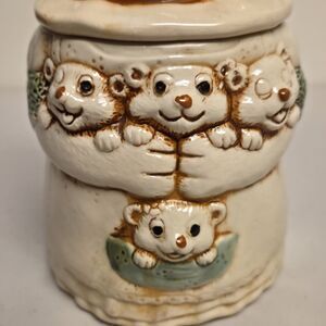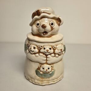 Vintage Mama Bear Ceramic Cookie Jar Four Cubs Country Babies Farm House