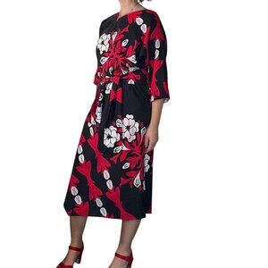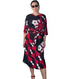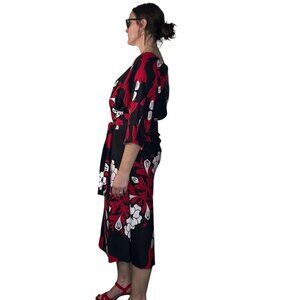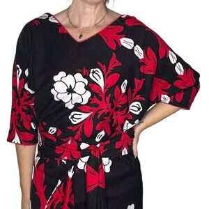 Vintage Mamo Howell Muumuu Dress Hawaii Belted Floral Black Red Large