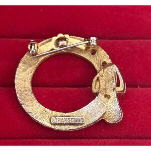 In the captivating world of vintage fashion, the Mamselle brooch stands as a testament to timeless artistry. This gold-tone buckle-style pin, originating from the 1960s, captures the essence of elegance with its intricate design. Its circular form and detailed craftsmanship make it a cherished collectible for those who adore classic jewelry.