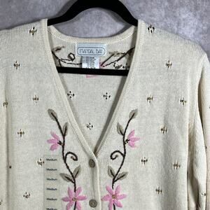 Vintage Mandal Bay Cardigan Sweater Womens Medium Cream Knit Floral Cottagecore