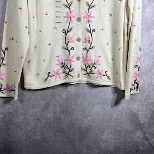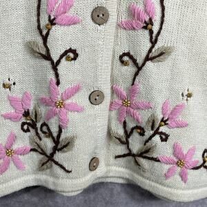 Vintage Mandal Bay Cardigan Sweater Womens Medium Cream Knit Floral Embroidered V-Neck Cottagecore Grandma Old Money