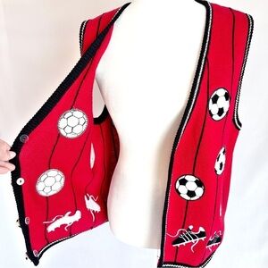 Vintage Mandal Bay Soccer Mom Novelty Button Red V-Neck Knit Sweater Vest Large