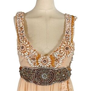New with tags Mandalay Silk Chiffon Sleeveless Embellished Midi Dress Size 6 in peach