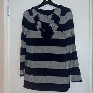 Vintage Mandees Navy and Gray Striped Hooded Cardigan