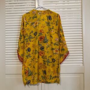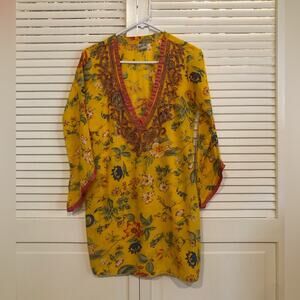 Vintage Manika Yellow Floral and Beaded Tunic Top Swim Cover