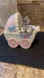 Charming ceramic cat figurine music box featuring adorable kittens in a pink and blue carriage. Perfect for cat lovers and collectors.