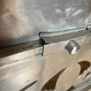 Note: there is a tear in the metal where the center expansion rod runs through. See photos.
