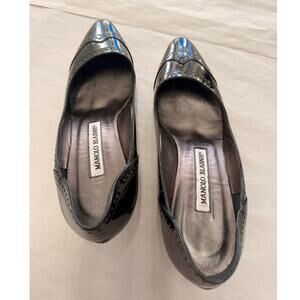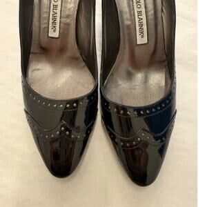 Vintage Manolo Blahnik Black Patent Leather Brogue Kitten Heel Pumps Eu 36.5