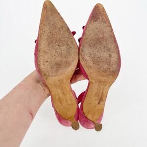 Vintage Manolo Blahnik Pink Suede Knotted Bow Pointed Toe Slingback Pump
