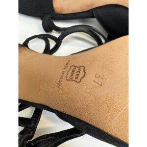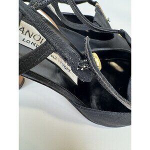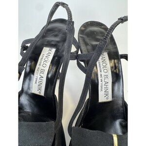 Vintage Manolo Blahnik Size 37 6 Heels Slingback Pointy Black Gold Fabric