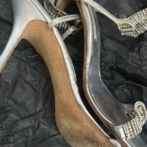 Vintage Manolo Blahnik silver/rhinestone strap heels, size 39 1/2
