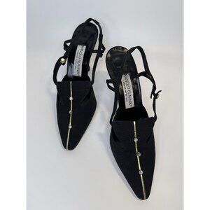 Vintage Manolo Blaknik Size 37 6 Heels Slingback Pointy Black Gold Fabric