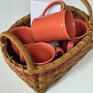 Coffee cups: White Pfaltzgraff plain and Christmas pattern.