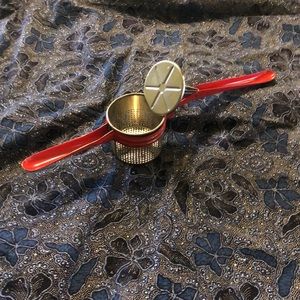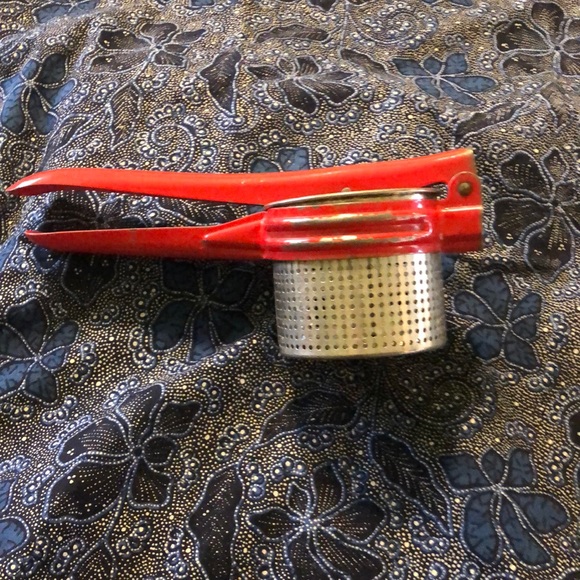 This vintage fruit juicer, potato ricer/masher, and apple press is still functional. This could be an item to add to your kitchen gadgets or to use as a cute display item. It would look amazing as a display that you could actually use once in awhile!!