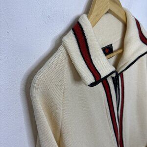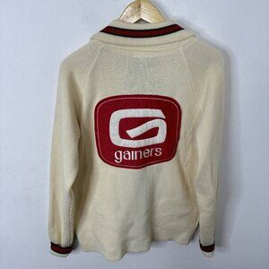 Vintage Maple Knitting Mills Men L Curling Wool Cardigan Gainers Patch Preppy