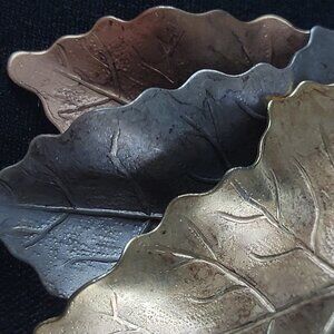 Vintage Maple Three-Leaf Brooch Pin Gold Silver And Copper Tone