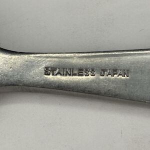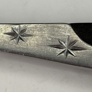 Add some mid-century charm to your dining experience with this Vintage Mar-Crest Ebony Elegance Stainless Steel Serving Fork. Crafted in Japan, this elegant utensil features a combo design of the timeless starburst pattern and ebony black on the handle, combining functionality with a classic design that's sure to impress guests at any occasion. The glossy black and silver finish of this serving fork is indicative of the high-quality stainless steel used in its construction.