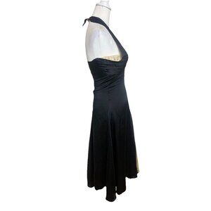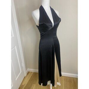 Vintage Mara Hoffman 100% Silk Late 90’s Y2K Era Black Tan Satin Halter Dress S