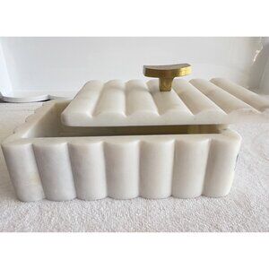 Vintage Marble Alabaster Fluted Vanity Jewelry Trinket Box 7 x 5 x 3 Gold Handle