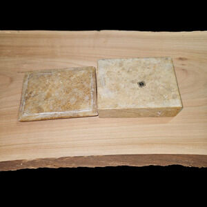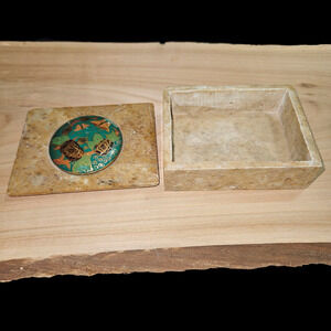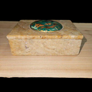 Color: Tan marble with multicolor enamel inlay (green, gold, black)