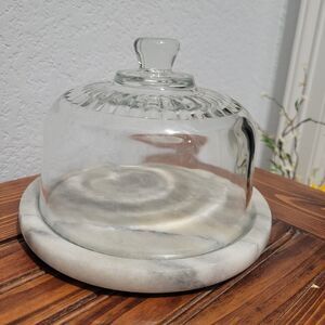 Vintage Marble White & Gray Cheese Cloche Glass Dome Lid 7.5 x 5.5" MCM Dessert