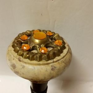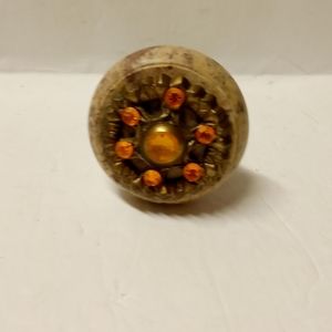 Vintage Marble Wine Stopper with Orange Decorative Rhinestones & Gold Metal