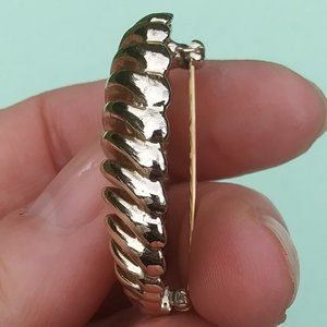 Vintage Marboux gold tone faux pearl brooch . This vintage piece always reminded me of a seashell . Copyright symbol and Marboux stamped on the back with a number I think it reads 912 . Quarter and ruler in pics to help with size visualization. Questions are always welcome. Weighs 15 grams on my kitchen scale which equals ~ .53 ounces.