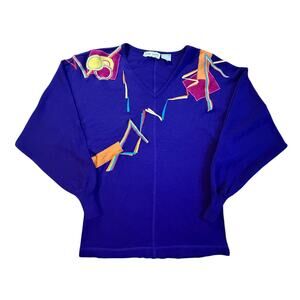 Vintage Marc D'Alcy 80s Abstract Purple Long Sleeve Wool Blend Sweater Womens S