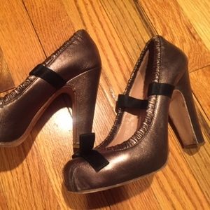 Gorgeous metallic bronze retro, mod, vintage Marc by Marc Jacobs platform heels. Perfect for a black party dress.