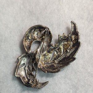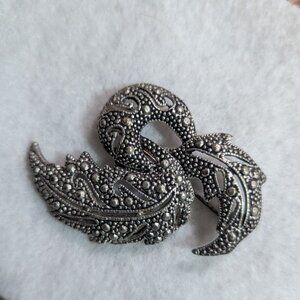 Vintage Marcasite Silver-Tone Textured Leaf & Swirl Design Brooch Pin