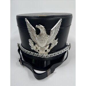 Vintage Marching Band Hat Medium Black Pluribus Eagle Costume Shako Maker w/Case