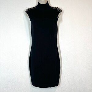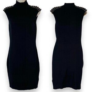 Guess Marciano Black Knit Mini Dress Sexy Mock Neck Small. Beading on shoulders.