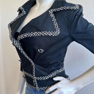 Vintage Marciano Navy and White Blazer with Geometric Trim