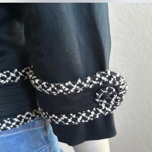Designer Chanel inspired classic Navy & white houndstooth tweed trim and button detail