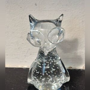 Vintage Marco Polo Clear Glass Pointed Beak Owl Figurine Handblown Glass