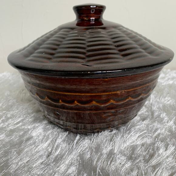 Vintage Marcrest Oven Proof Daisy Dot Brown Stoneware Bowl Dish
