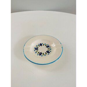 Vintage ashtray by Stetson Marcrest in the Swiss Chalet pattern, also known as Swiss Alpine. This popular pattern was discontinued in the 1960's. Fun, mod trees and flowers arranged in a circular pattern. Blue, turquoise and greens with a turquoise rim around the edge. Wonderful, vivid design.