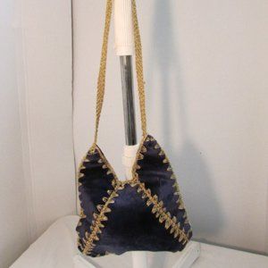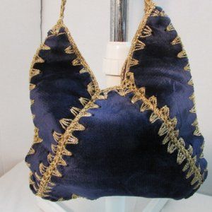 Vintage Marcus Brothers Made in Italy Navy Blue with Gold Braided Crochet Crossbody with snap closure