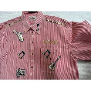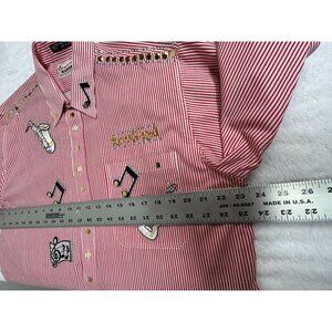 Vintage Mardel Striped Button-Up Shirt Large Musical Embroidery Handcrafted New